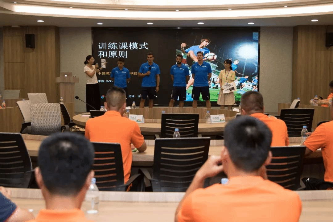 723日晚,四位西甲联盟外籍专家为营区教练员培训,双方互相交流,分享经验。