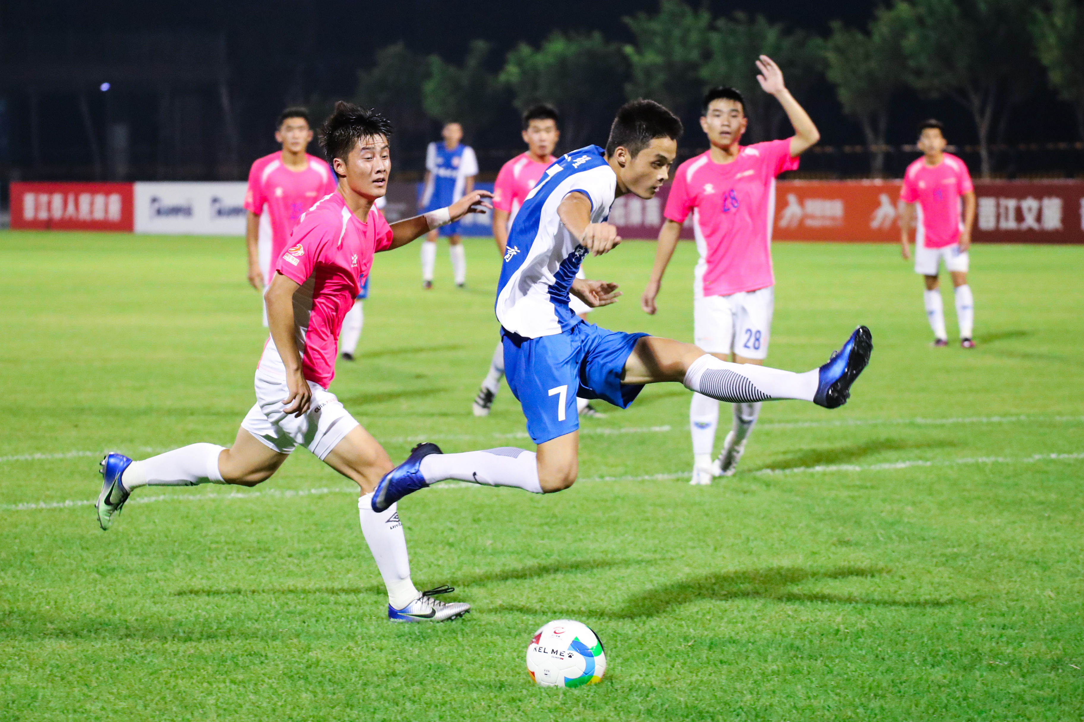 文兰瑾不过,内科大旋即作出回应。还未等对方从进球的喜悦中回过神来,第35分钟,内科大开角球,皮球穿过对方防守球员,直达4号队员景致优的脚边,就在球门区外一步,景致优面对球门一个直射,将比分扳平。