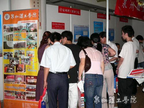 上午,泉州理工学院思恩楼内人山人海,热闹非凡,由福建日报报业集团主办、泉州理工学院协办的“2008福建高校招生咨询会暨国际教育展(泉州专场)”在此隆重举行。百余所国内高校,四十余所海外院校、留学机构亮相泉理工,与泉州地区的考生、家长面对面交流,吸引了上万名考生、家长前往咨询,场面火爆热烈。这是我校连续第四次成功举办此类咨询会。