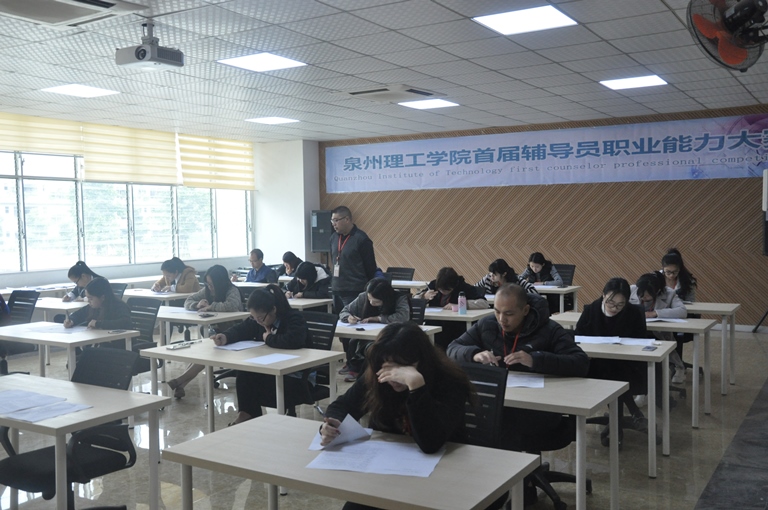 2016 12 6 日,在泉州理工学院主楼第二会议室举办了泉州理工学院首届辅导员职业能力大赛,大赛分为上下半场。早上为笔试阶段,下午为学生信息辨识环节。参加本次比赛的辅导员共有 18 位。