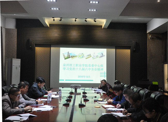 12月22日下午,我校党委在主楼第一会议室召开中心组(扩大)学习会,学习党的十八届六中全会精神。