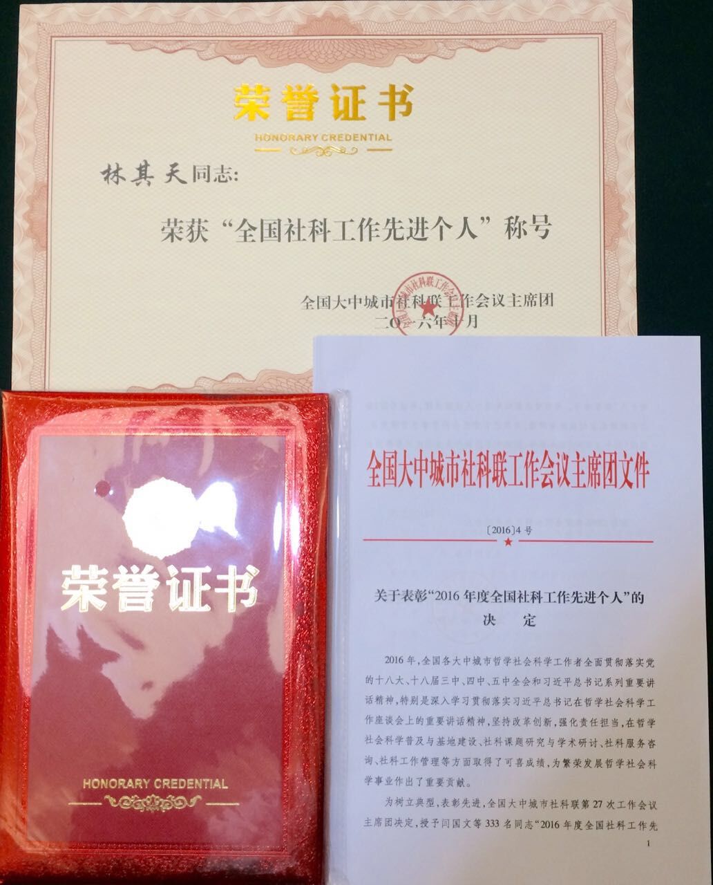 近日,全国大中城市社科联工作会议主席团发文,表彰“2016年度全国社科工作先进个人”的决定,我校党委书记林其天,获得“全国社科工作先进个人”称号。