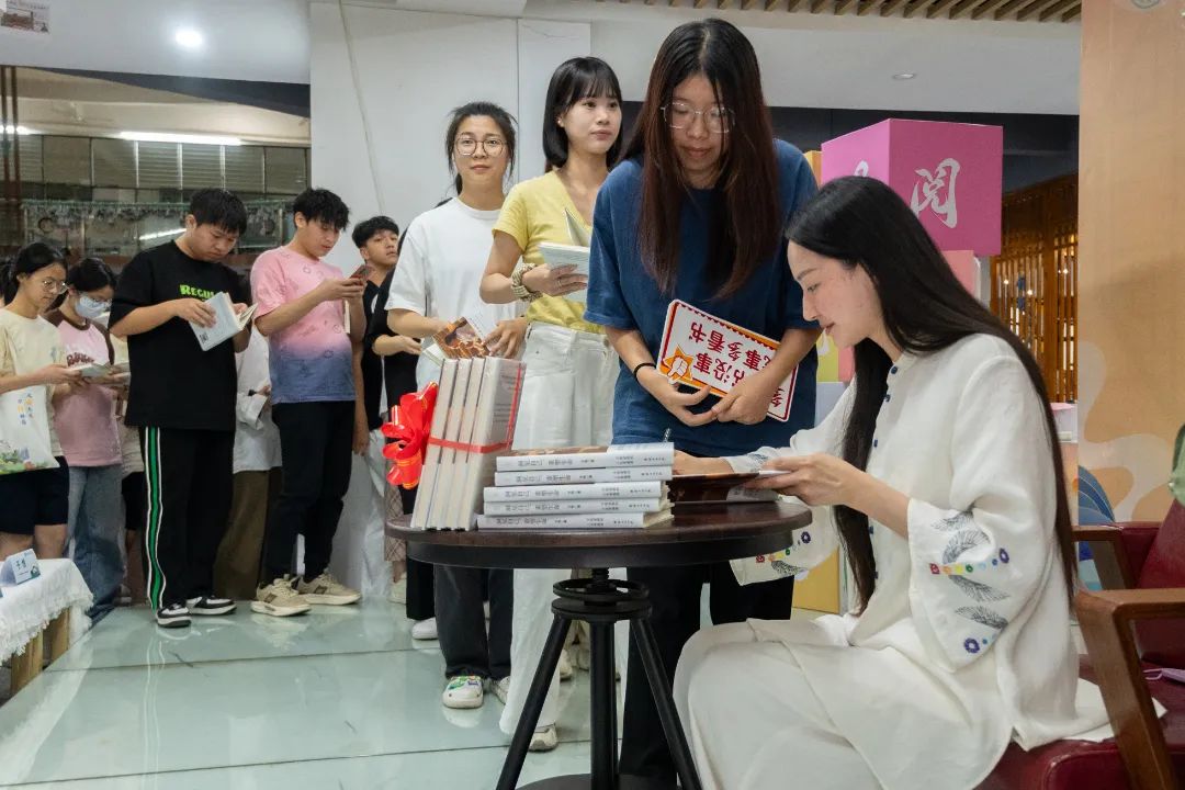活动尾声,许晋杭和子悦老师为同学们准备的书籍签名题字,并合影留念。