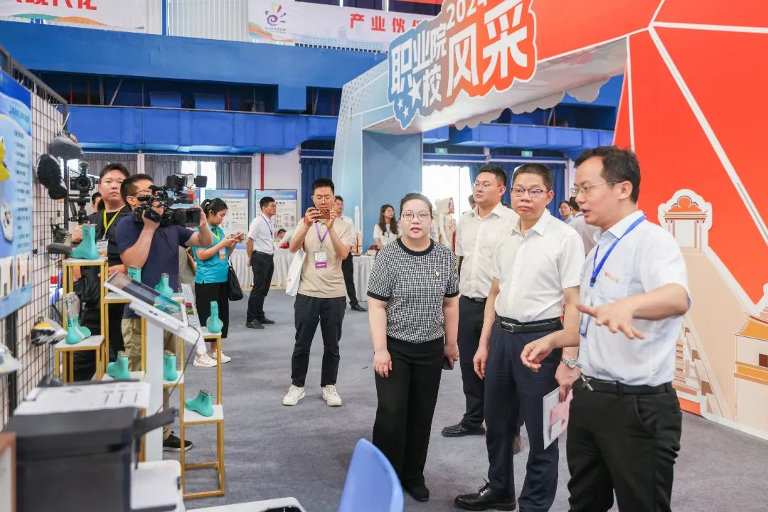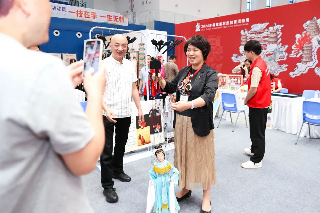 当天,与会领导及嘉宾参观泉州市职教展。泉州市职教展精彩纷呈,现场有职业院校风采展,由泉州文创、提线木偶表演、泉州珠绣、闽南红砖雕刻、泉州刻纸、彩扎花灯、木版年画、沙画、掐丝珐琅等项目组成的非遗文化展示和体验活动,以及由华为、希沃、超星、锐捷、用友新道、奇安信、凌迪、索尼、北森生涯、国关智能心理等校企合作“天团”展示丰富的职业教育应用场景,提供多元沉浸式互动机会,还有晋江市域产教联合体牵头企业盼盼食品集团带来的高品质健康品牌新体验。领导嘉宾与各参展单位展开亲切交流,共话发展。