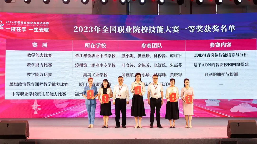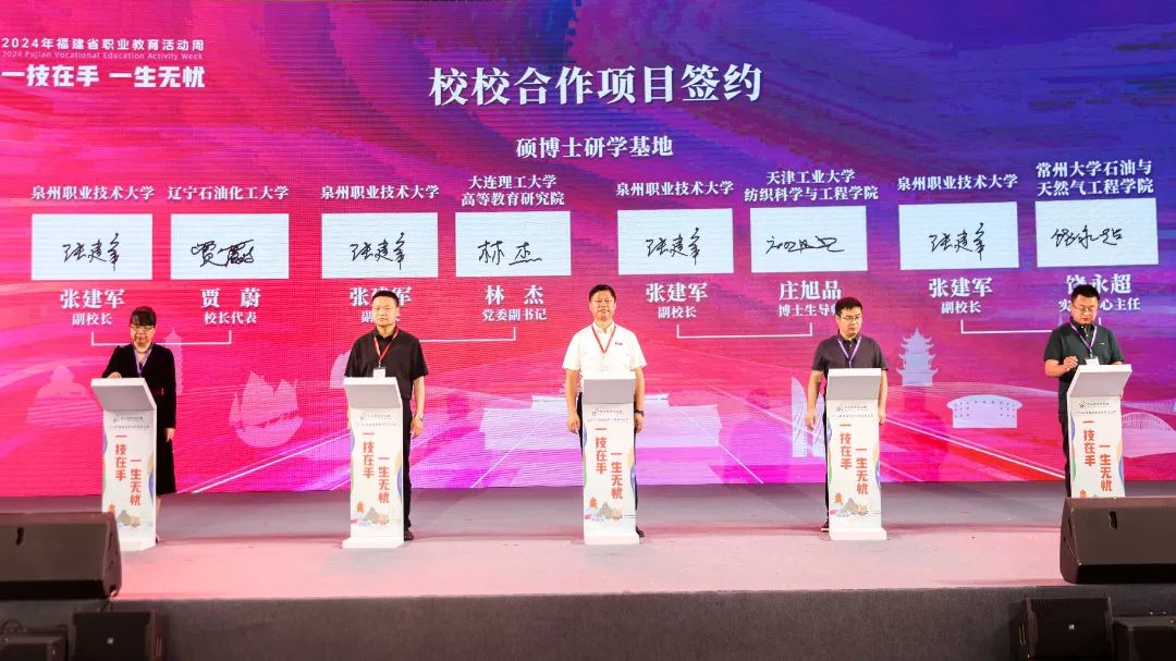 活动上,公布了福建省第一批20个“海丝学院”并进行授牌,为入选首批28个国家级市域产教联合体的晋江市域产教联合体及6个省级市域产教联合体授牌,并表彰在全国职业院校技能大赛中获得一等奖的教师。