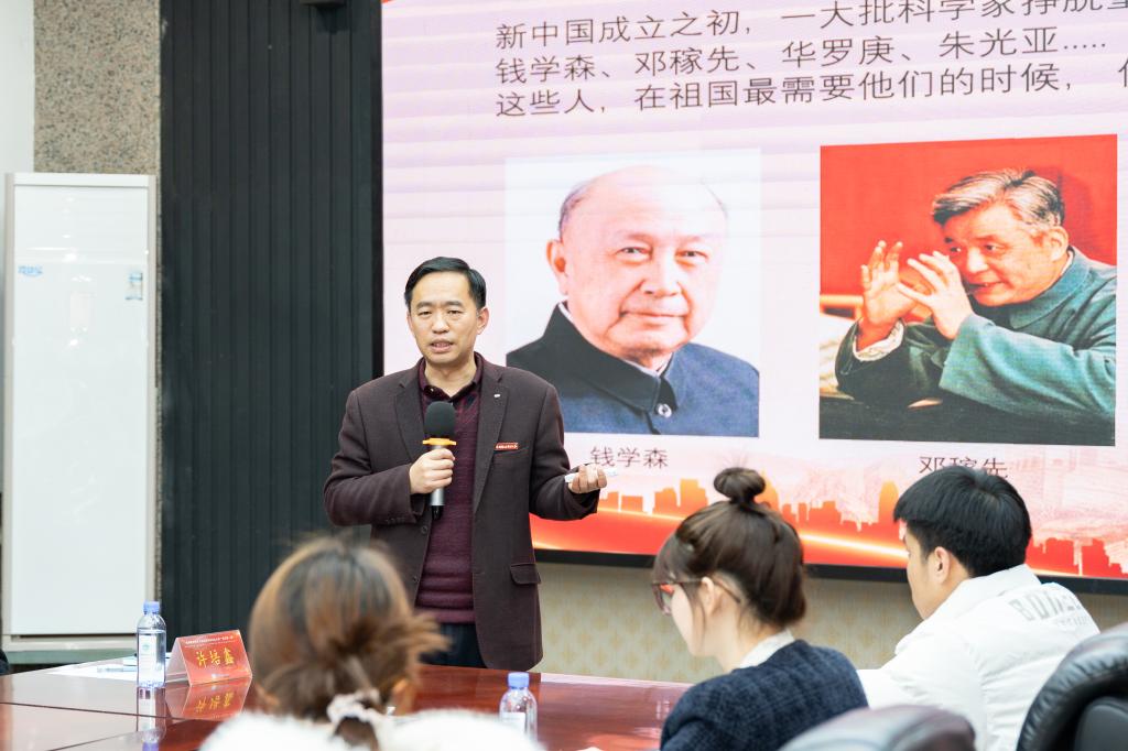 傅志雄与同学们深入探讨理想信念作为共产党员精神支柱的重要性,引用毛泽东、周恩来、邓小平等领导人的奋斗故事与金句,并分享吴金营董事长的励志故事,激励同学们要追求理想,“要以实现中华民族伟大复兴为己任,不负时代使命。”