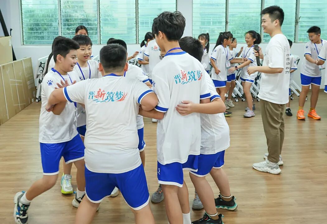 开营首日,一场别开生面的心理团建活动便打破了陌生感,“桃花朵朵开”破冰游戏迅速点燃现场氛围;报纸建塔”挑战加深团队协作,“夏日粘土奇遇”环节为活动增添了无限创意与乐趣。随后的非接触式心理互动测评,帮助团队老师了解营员情况,为夏令营活动提供参考。趣味运动会上更是热闹非凡。足球保龄球、摸石过河、纸杯搭搭……营员们为团队荣誉拼搏,陈少聪赢得比赛后与队友相拥:“一起努力的感觉真好!”