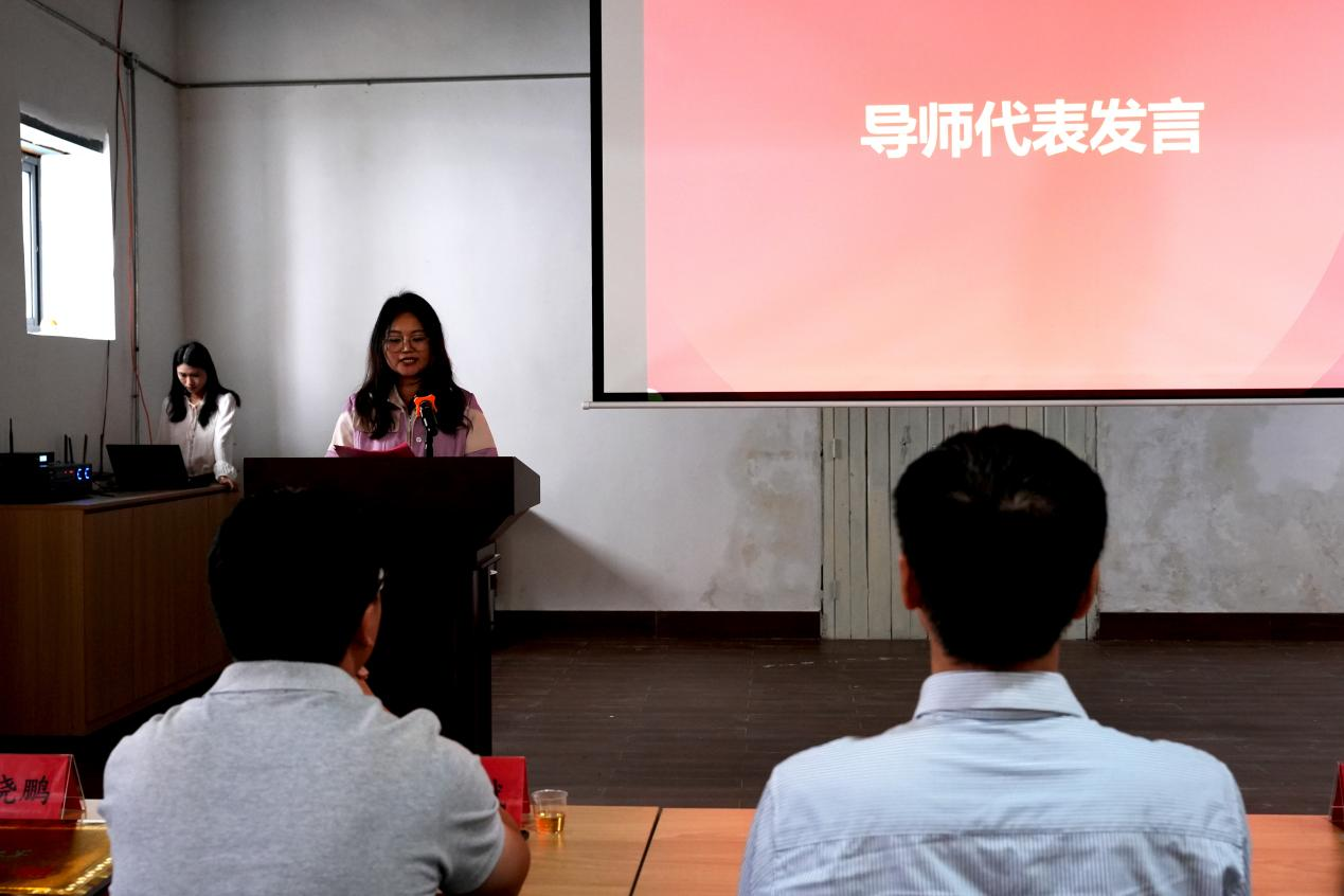 王静代表导师发言,感谢下洋镇与溪塔村为校地合作付出的努力。她以“平台”、“赋能”、“护航” 为核心分享:实训基地是课堂与乡村的桥梁,能推动学生从“旁观者”变“记录者”;数字媒体艺术专业可借技术为下洋镇记故事、推物产;导师团队会引导学生兼顾创作与国策理解,锤炼乡土情怀。她鼓励学生用专业助力乡村,预祝大赛与合作成功。