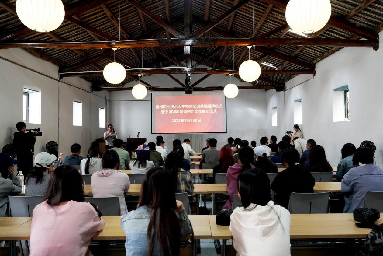 10 月 30 日,泉州职业技术大学艺术传媒学院聚焦“实践育人”核心使命,在永春县下洋镇省级乡村振兴示范村溪塔村举行校外实训基地授牌仪式暨“下洋镇新媒体创作比赛”启动仪式。学校领导、师生代表与下洋镇相关负责人齐聚一堂,共同见证学校深化产教融合、服务地方发展的又一重要举措。