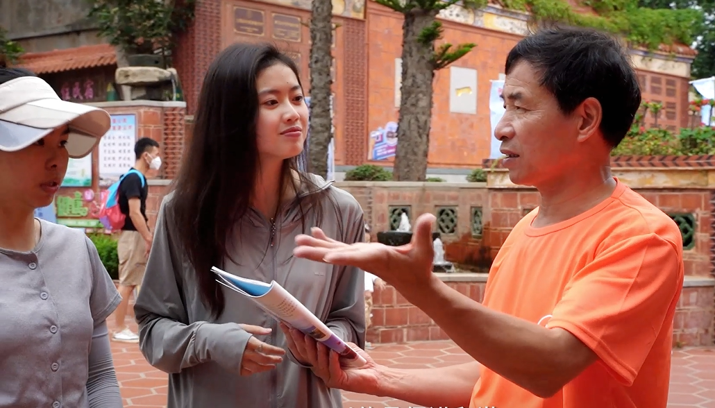 ▲ 红色讲解团成员何珠兰、林周银向参观者讲述党史故事