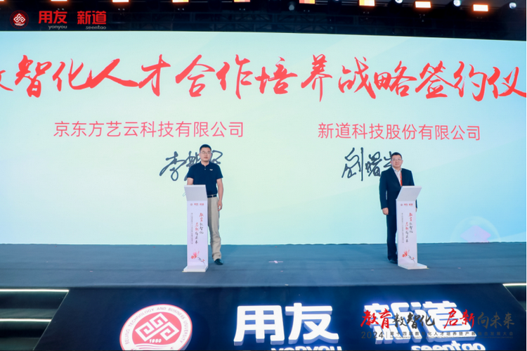 2024年,新道科技将与院校持续深化产教融合,共推教育高质量发展。会议期间,新道科技与多家院校举行校企合作战略签约仪式。同时,新道科技与京东方艺云科技有限公司举行战略签约仪式,双方将充分发挥各自优势,深化产教融合,构建校企协同育人新格局。