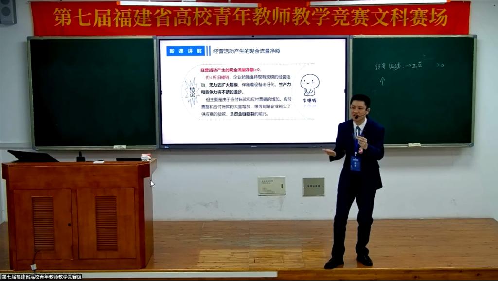 这堂课由90后的双师型教师郑伟清带来,他连续两个学期在学校教师质量评比中获得优秀,获评泉大教学质量奖。10年来,他潜心教学,花大把时间备课,将课堂打造得像商战片,每堂课都有新“剧情”。课堂上,同学们犹如追剧般沉浸其中,在润物无声中学习成长。