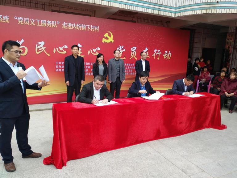 此次志愿活动意义重大,在活动现场,我校工学院党总支同高教中心办党支部、晋江市内坑镇下村村党支部签订共建协议,协议上、三方就为进一步贯彻落实“两学一做”学习教育活动,推进党建服务发展、服务基层、服务群众的实效,开展高教中心办党支部与泉州理工学院工学院党总支、内坑镇下村村党支部结对共建签约仪式并以“为民心连心 党员在行动”为主题,组织开展“党员义工服务队”走进内坑镇下村村活动。