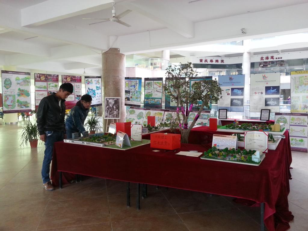 在2015年1月8日至1月13日期间,建筑设计系13环艺专业在食堂一楼大厅成功举办了为期六天的“美丽校园设计”课题展,任课老师为张艺能老师。