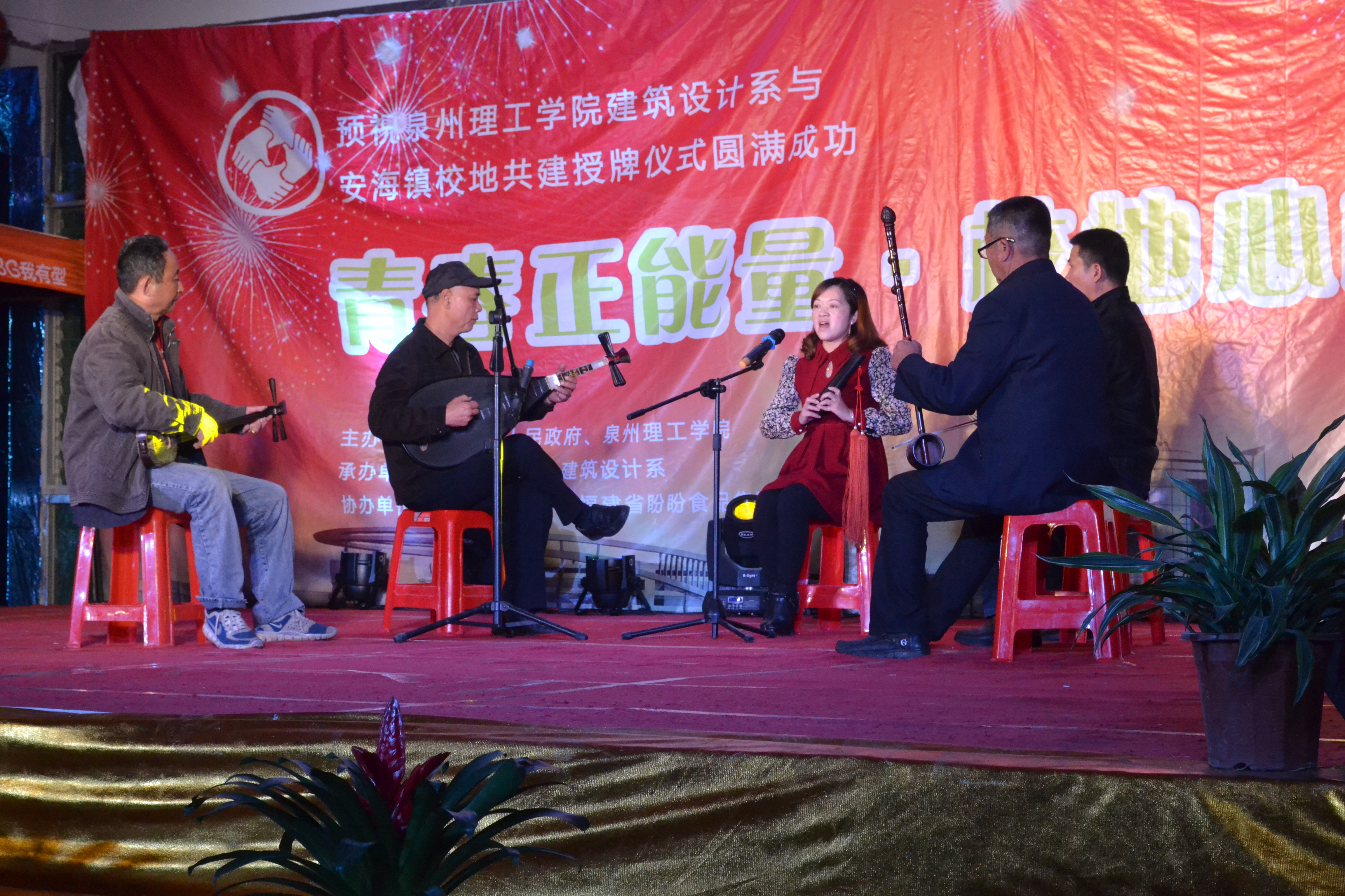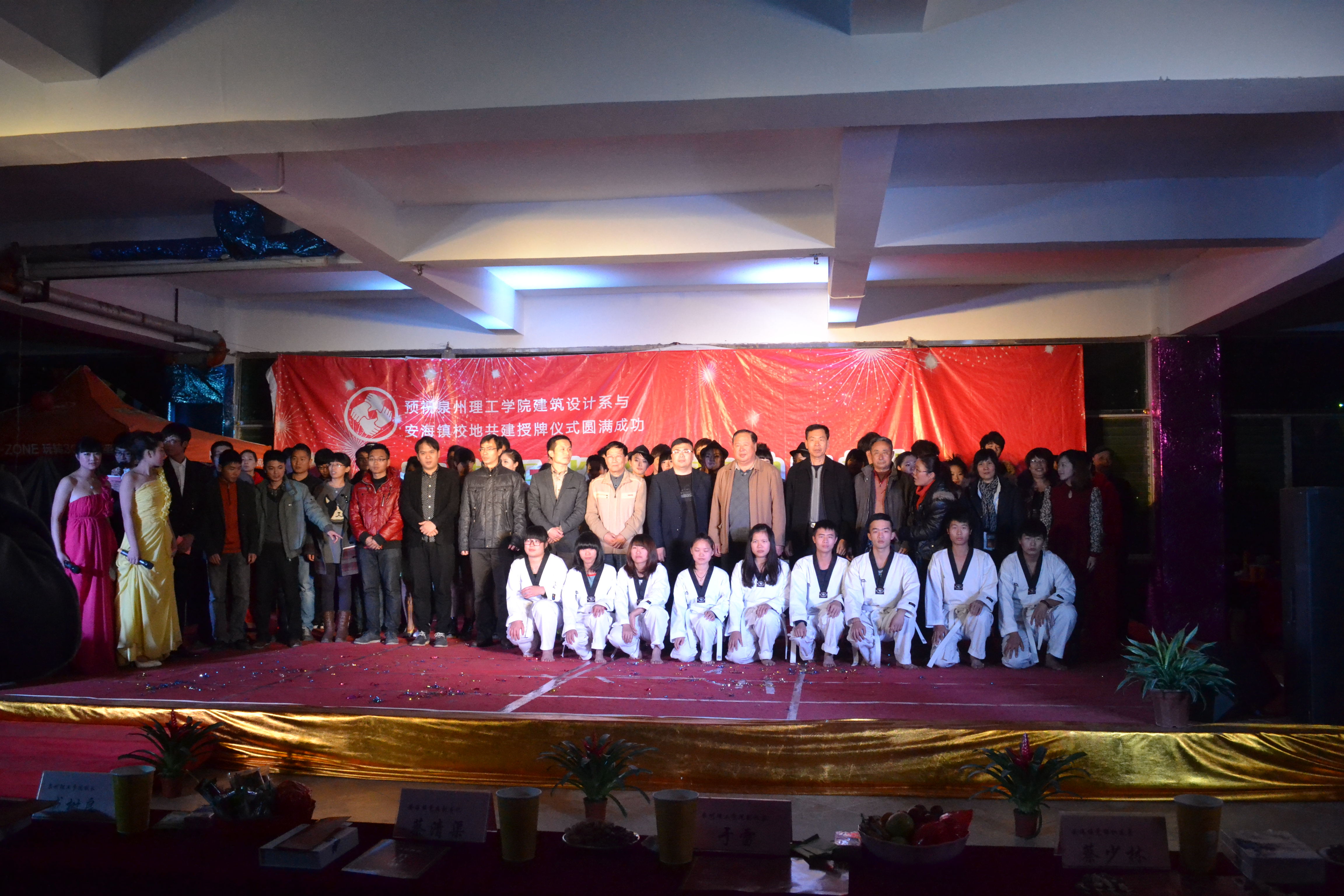 20131225晚上7时许,由安海镇政府、泉州理工职业学院主办,安海镇团委、学校建筑设计系承办的“青春正能量,校地心相连”为主题的共建授牌仪式暨文艺晚会在我校综合餐厅三楼隆重举行。