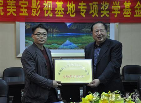 4月22日,泉州理工学院首个奖学类基金会——泉州理工学院美宝影视基地专项奖学基金会签约挂牌成立。泉州理工学院臧树良校长出席会议并代表学校与泉州理工学院美宝影视基地总经理周朝晖签订基金会成立协会并授牌。数字传媒系主任康赐荣,副主任郭霏霏,郑文杰老师参加会议。